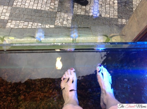 In May 2013 we traveled to Prague in the Czech Republic. While we walking near our hotel on Celetná Street we saw a Thai massage parlor (this place is part of chain throughout Prague that ONLY does legitimate massage), in the window there was a women sitting and she had fish around her feet. My initial reaction was, gross…. My husband decided that he wanted a massage and he stepped into the shop as I followed. The women at the desk asked if I wanted a fish pedicure and I told her in no uncertain terms, NO!