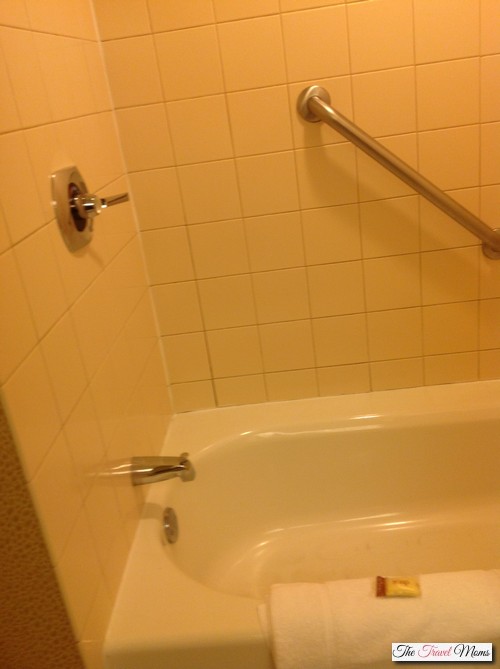 The bathroom was extremely clean and had a large mirror and outlets for hairdryers. The bathtub was a decent size and the shower’s water pressure was perfect.
