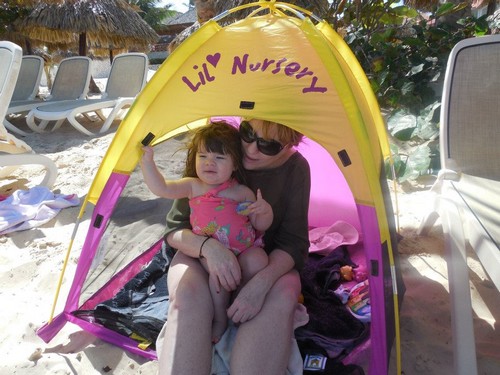 We just recently visited Punta Cana again and this time Ava was 17 months old. We took the tent to the beach each day and when it was nap time we would put her down to sleep in the tent. Ava was still able to play with her toys in the tent without the fear of her getting a sunburn. I cannot tell you how great this tent is.