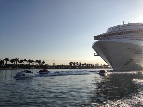 In Miami this morning, the MSC Divina made its dazzling debut. And she arrived in style. The MSC Divina was led in by several high-powered FIAT personal watercrafts. This marks a special day in history because, with today’s arrival, the MSC Divina becomes the first MSC Cruises ship to sail year-round from North America. We wish her well on all her future journeys!