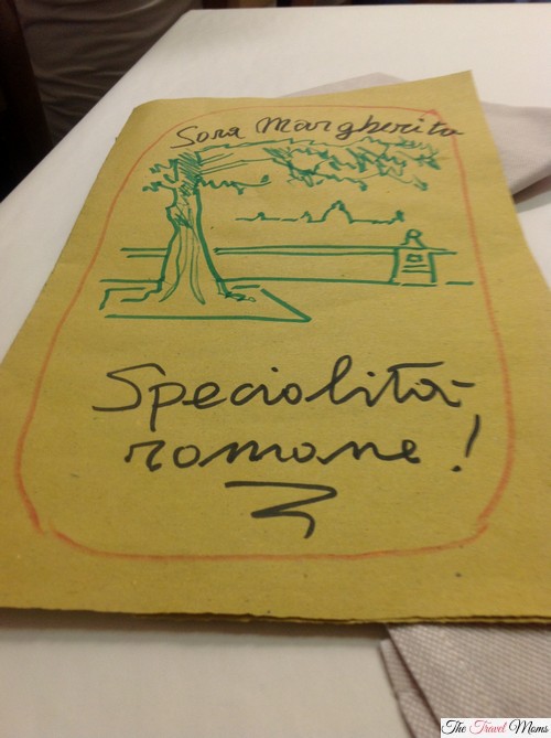Once the waitress puts the menu on your table you know you are not in Kansas anymore. The menu is in Italian and the servers speak little or no English but you can get by well enough by pointing and gesticulating. The servers do have enough English to help you if you work with them. The restaurant is small, family run and simple, don’t expect fancy, but the food is delicious and the atmosphere unique – extremely friendly and comfortable. It is not unusual to have regular local Roman diners get up from their tables to come and greet you and help you order. Reservations are a good idea if you want to make sure to eat here. The prices are not cheap, but they are reasonable.