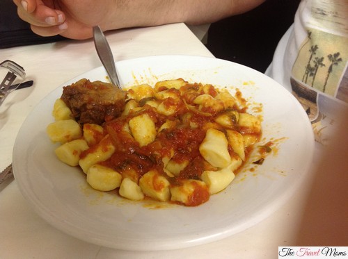 For our main dish we both had the homemade Gnocchi Al Ragu and it was the best gnocchi we have ever had in Rome – and we have had plenty! The gnocchi was yellower than what we normally get in Canada/USA but the taste is to die for and light as a cloud – the meat sauce perfection. Writing this is making me hungry for more 🙂