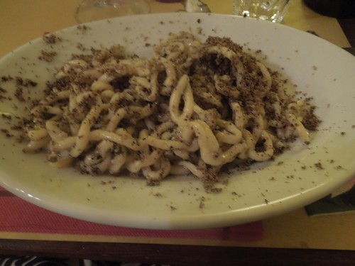 The main course hit the ball out of the park for me. I am a truffle lover, so when I saw they had homemade pici with fresh truffles on the menu I couldn’t resist. The dish was absolutely amazing and I can honestly say one of the best I’ve had in all of Italy. The owner literally shaved a whole Truffle on the pasta at the table. As noted before, I know a few things about Truffles and this dish alone would have easily priced over $100 dollars!
