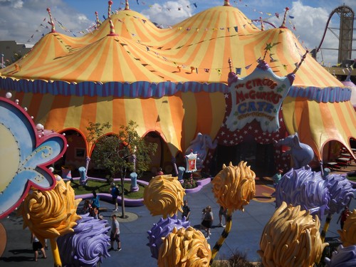 Would you like it here or there? Would you like it anywhere? Well, if you visit Universal Islands of Adventure in Orlando, Florida and head over to Seuss Landing you might just find that famous Cat In The Hat walking around. Ever since my children were young, their favorite books were anything by Dr. Seuss and with that, Seuss Landing has always been a favorite place to visit. When you walk through the main entrance, you can’t help but smile when you see the Cat in the Hat ride, the One Fish, Two Fish, Red Fish, Blue Fish ride, the Caro-Seuss-el , the Ran the Zoo playground and the High in the Sky
