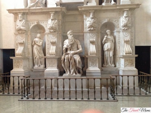 To the right above is Michelangelo’s Moses which dates from 1505 – Pope Julius II hired Michelangelo to build his tomb, which was supposed to be a huge monument. In between working on the monument he painted the Sistine Chapel and did other work. He spent 30 years working on this project on and off and when Pope Julius died so did the funding.