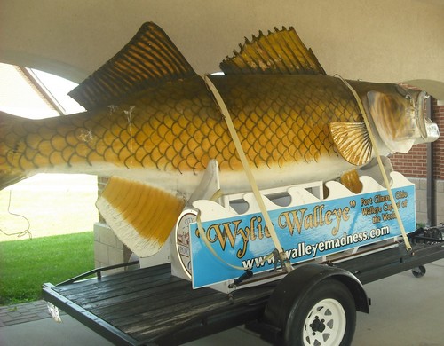 At this year’s New Year’s Eve “Madness at Midnight Walleye Drop” everything went off without a hitch, however there was one part to the Walleye Drop that gained a little regional attention. “Wylie,” the actual 600 lb. fiberglass fish that is dropped, is starting to show some serious signs of age. Of course this isn’t the first time he’s been a little worse for wear – there’s some intriguing history behind it.