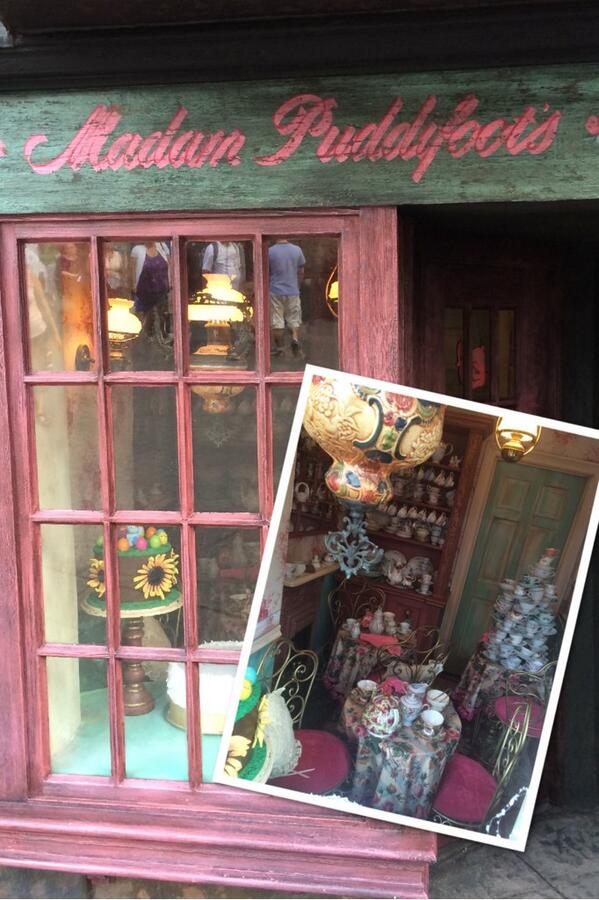 We recently got a peek at the Knight Bus as it made its way down Florida highways and arrived at the park. Click here for those photos! Now, images of the makeover at Hogsmeade reveal Madam Puddifoot’s Tea Shop.