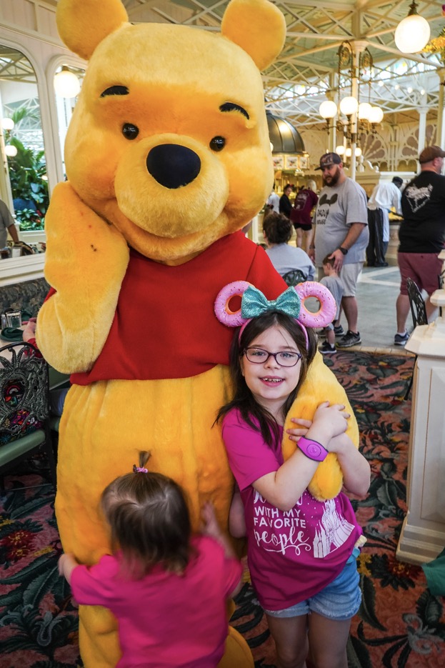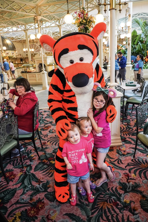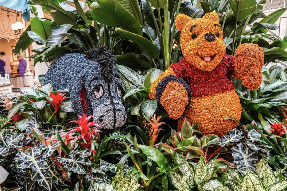 The light-filled space is truly beautiful, with tropical palms and topiaries throughout. The main draw of this restaurant is the opportunity to meet Winnie-The-Pooh, Piglet, Tigger, and Eeyore, but anyone can appreciate the aesthetic of the restaurant.
